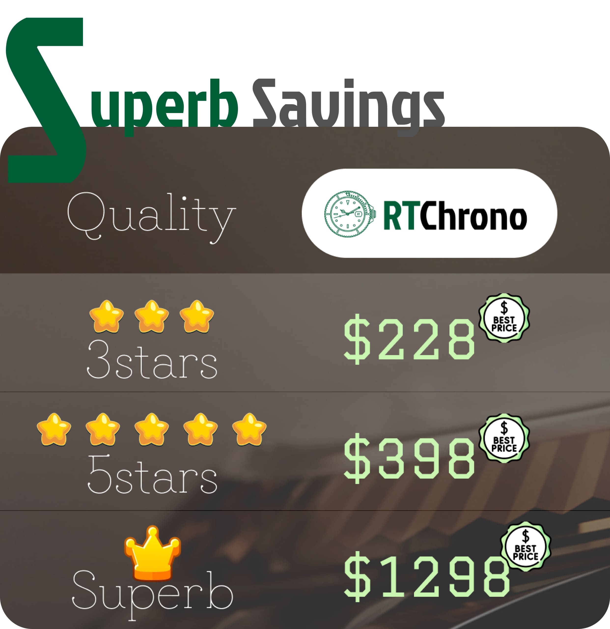 You're not alone! Luxury watches can be super expensive, but that doesn't mean you can’t enjoy the look and feel of one. Here at RTChrono, we offer high-quality replica watches that are almost identical to the real thing, but at a fraction of the cost.